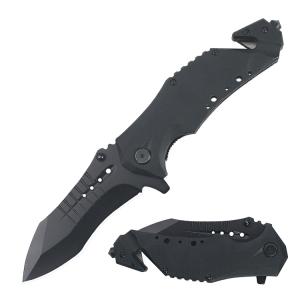 WK17001 Black Aluminum Survival Folding Knife with glass breaker