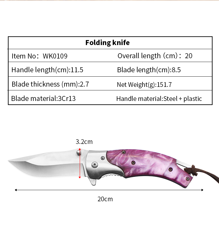| Item | WK0109 Pink Plastic Handle Outdoor Knife |