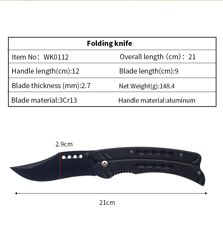 | Item | WK0112 Black Aluminium Handle Folding Knife |