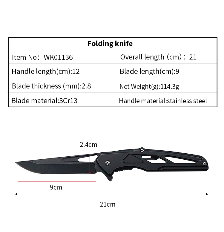 | Item | WK01136 Black Steel Outdoor Folding Knife |