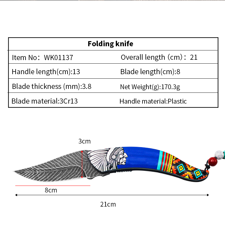 | Item | WK01137 Tribal Patterns Plastic Folding Knife |