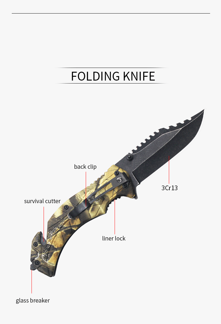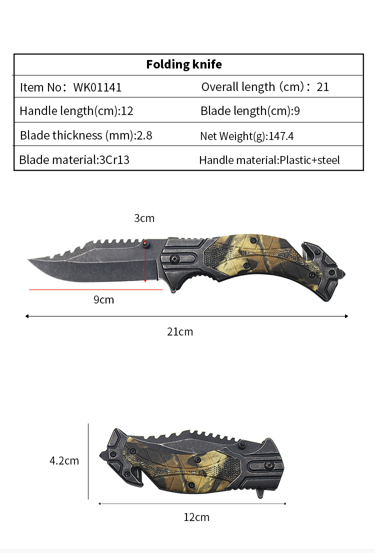 | Item | WK01141 Army Tactical Plastic Folding Knife with Survival Cutter |