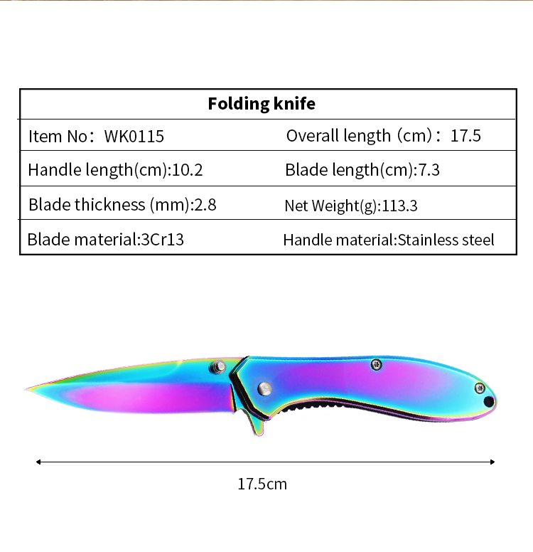 | Item | WK0115 Colorful Steel Handle Pocket Knife |