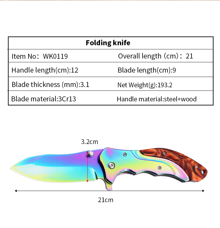 | Item | WK0119 Colorful Steel Folding Knife |