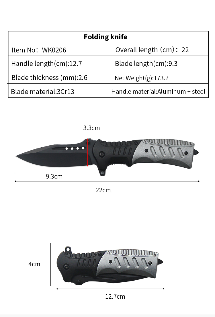 | Item | WK0206 Black Aluminium Pocket Outdoor Knife with glass breaker |