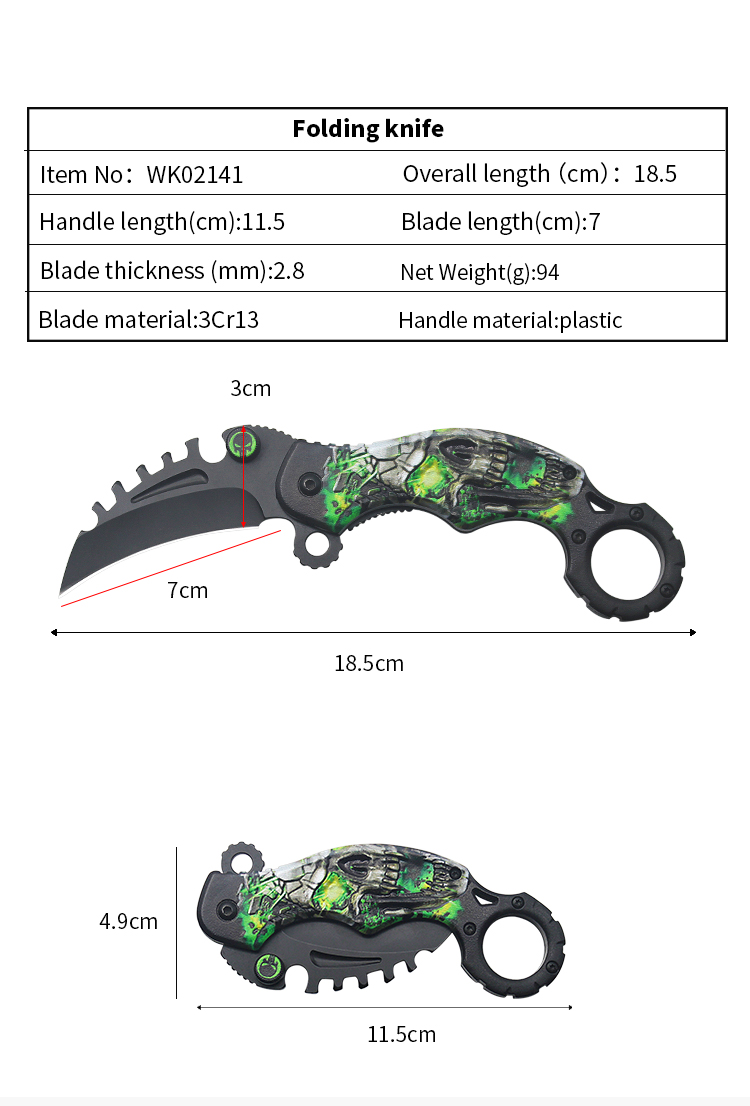 | Item | WK02141 Karambit Fixed Blade Green Folding Knife |