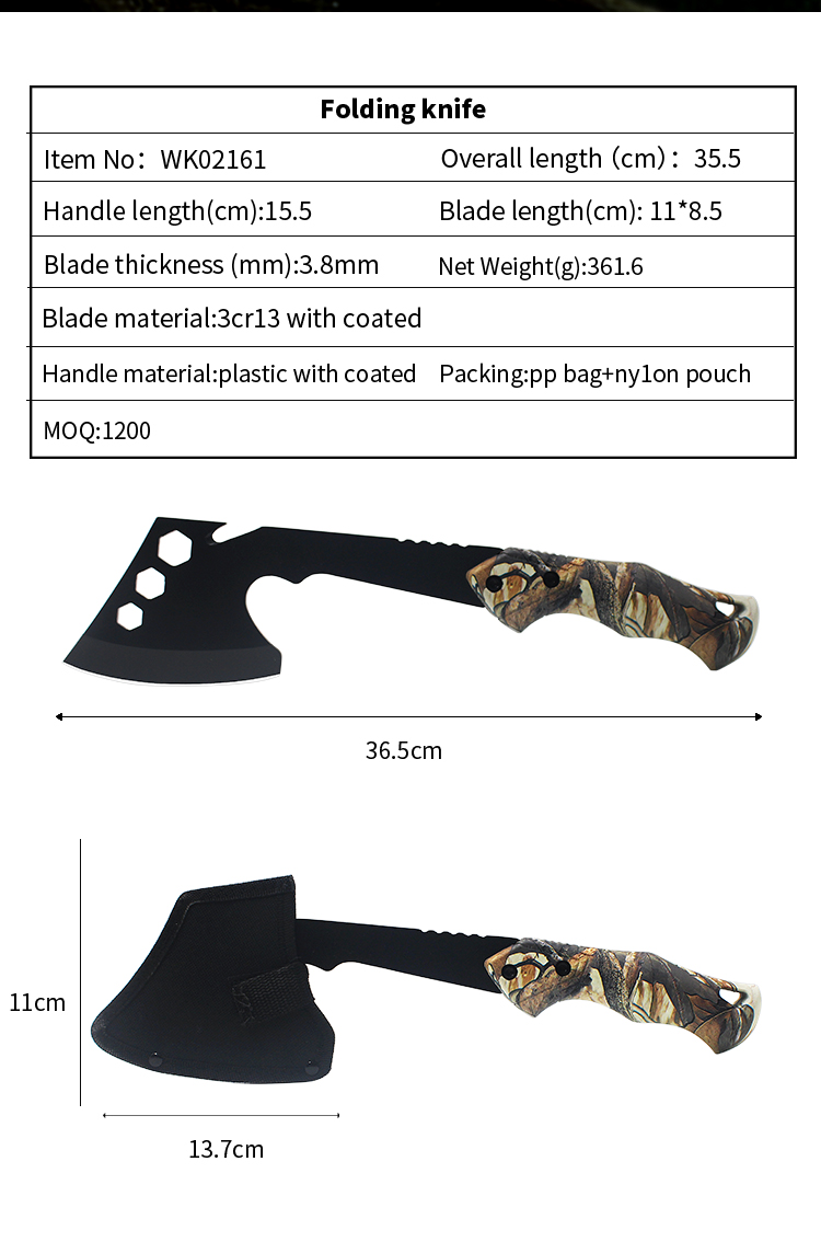 | Item | WK02161 3Cr13 Hatchet Axe with black finished |