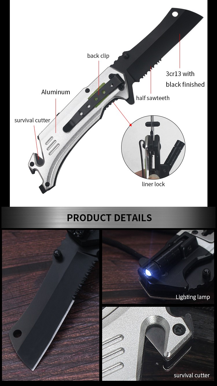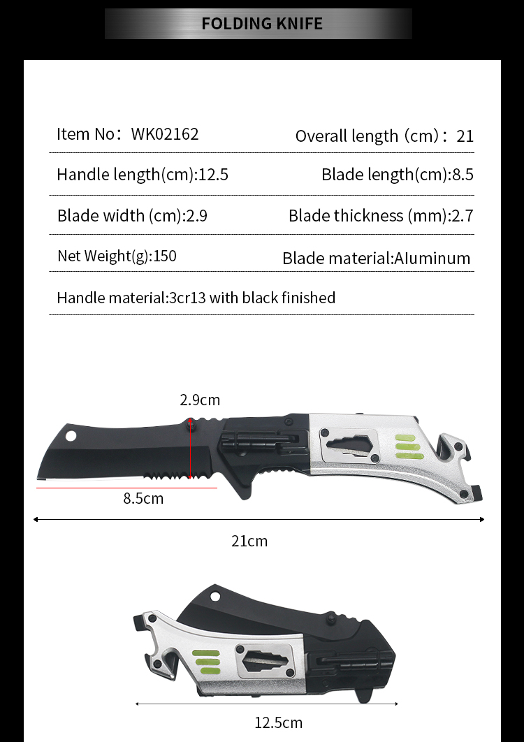 | Item | WK02162 Aluminium Pocket Folding Knife with led light |