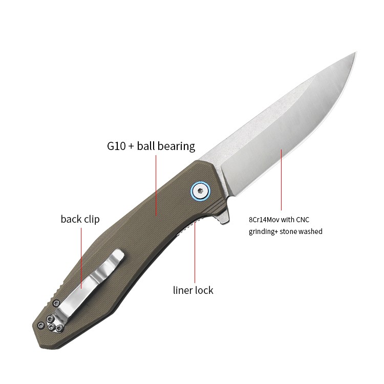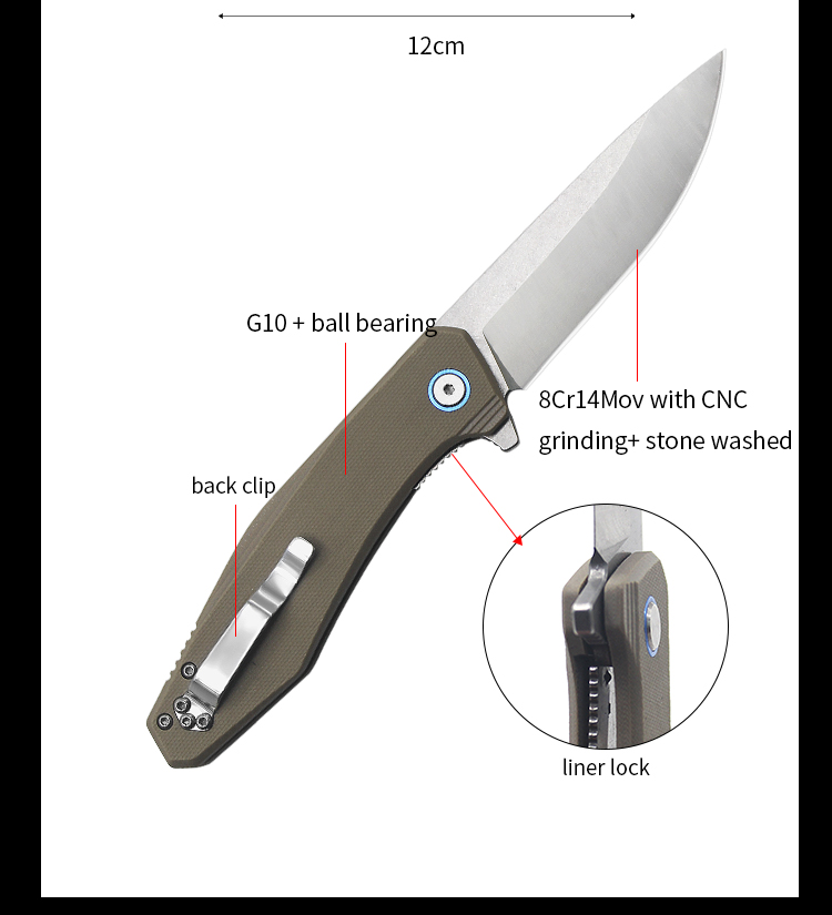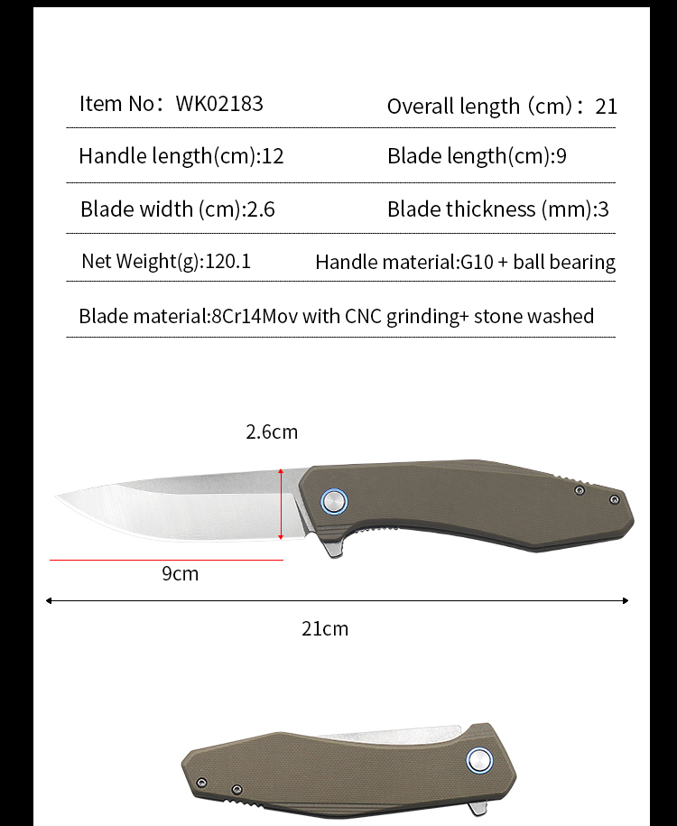 | Item | WK02183 G10 Atone Washed Blade Survival Folding Knife |