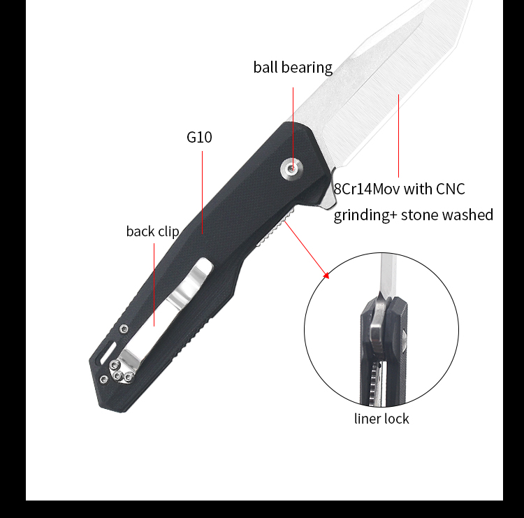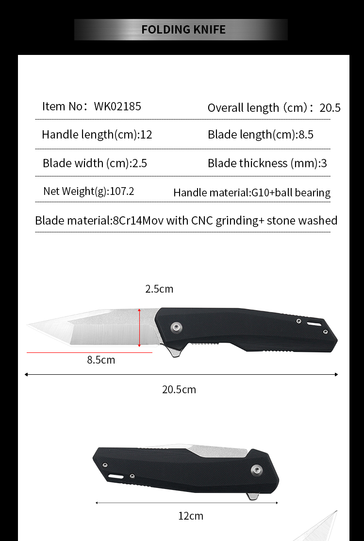 | Item | WK02185 Black G10 CNC Grinding Blade Camping Folding Knife |