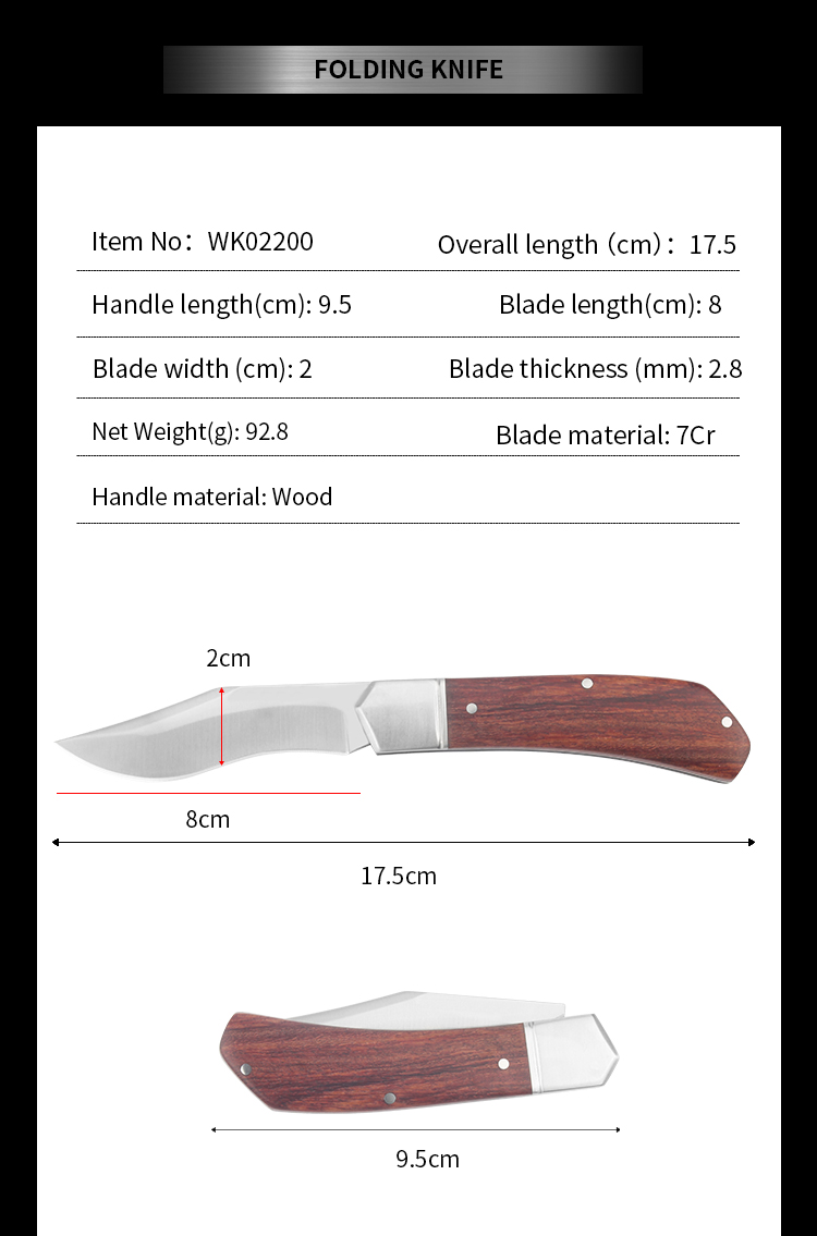 | Item | WK02200 Wooden Survival Folding Camping Knife |
