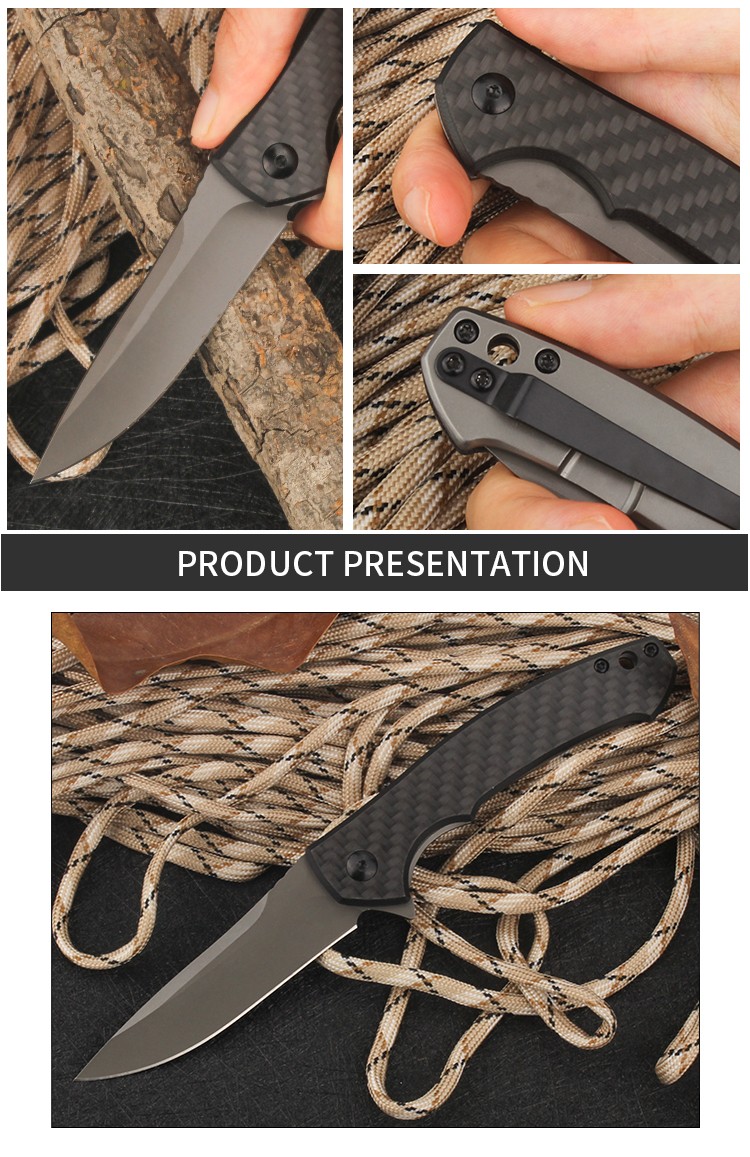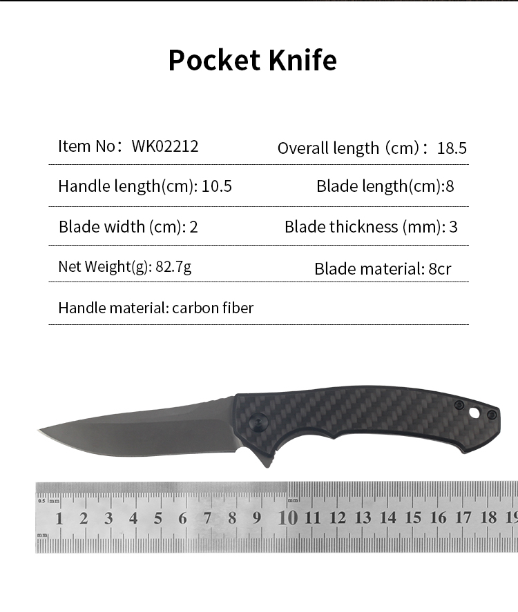 | Item | WK02212 Black Carbon Fiber Camping Tactical Folding Knife |
