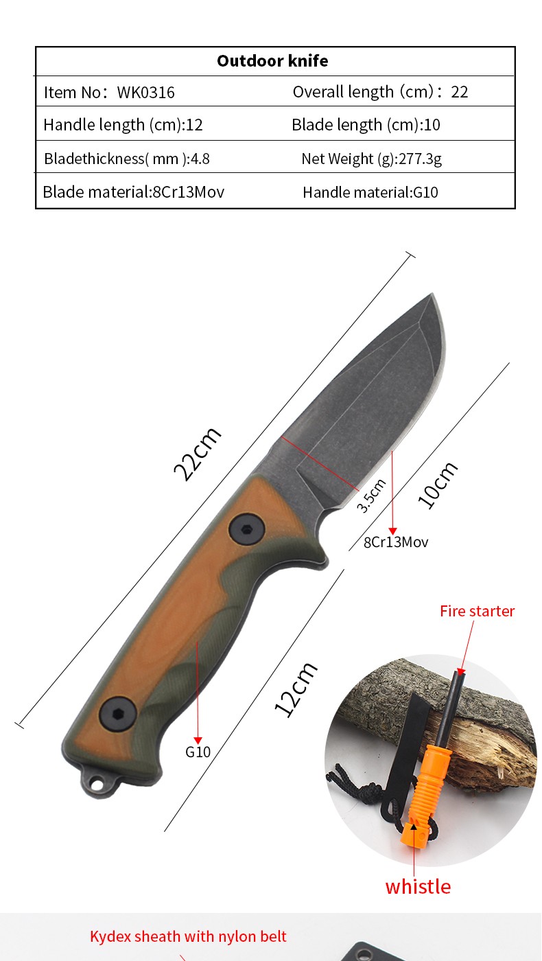 | Item Name | WK0316 Orange G10 Fixed Blade Hunting Camping Knife |