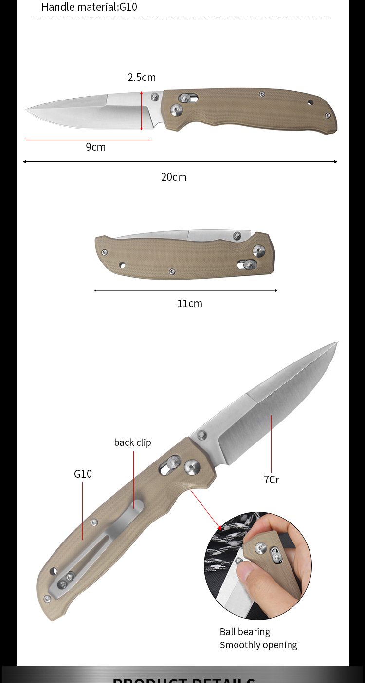 | Item | WK04027 G10 Ball Bearing Camping Tactical Folding Knife |