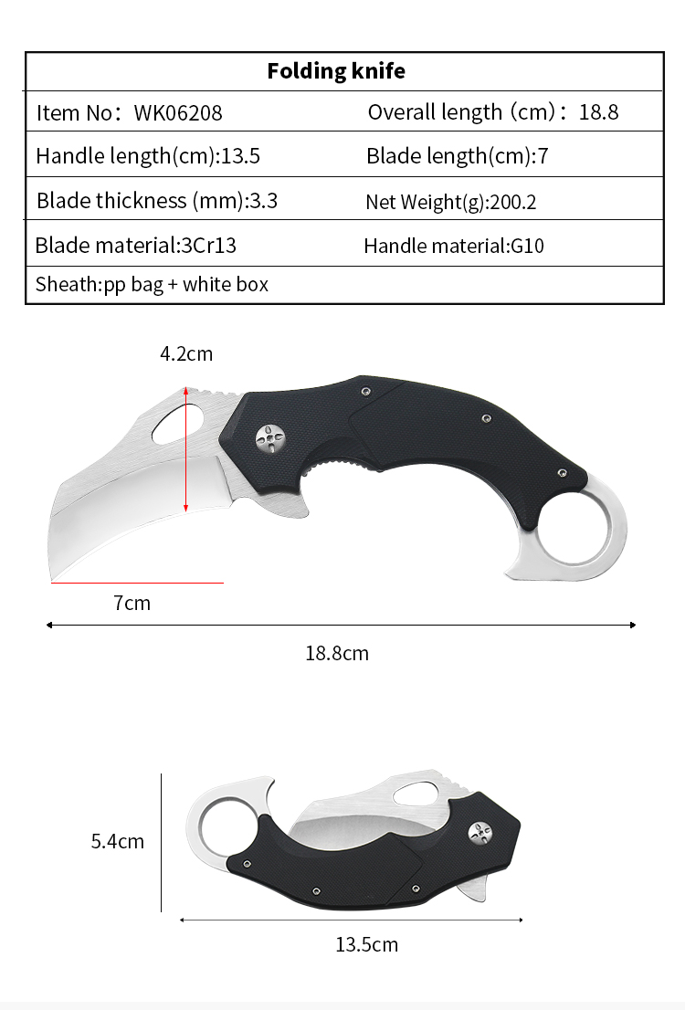 | Item | WK06208 G10 Karambit Folding Pocket Knife |