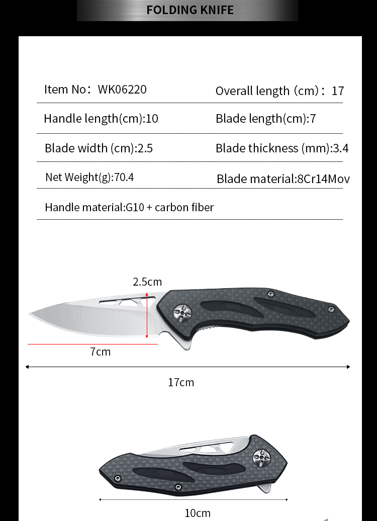 | Item | WK06220 G10 carbon fiber Combat Folding Pocket Knife |