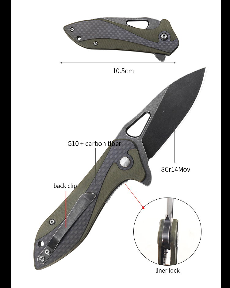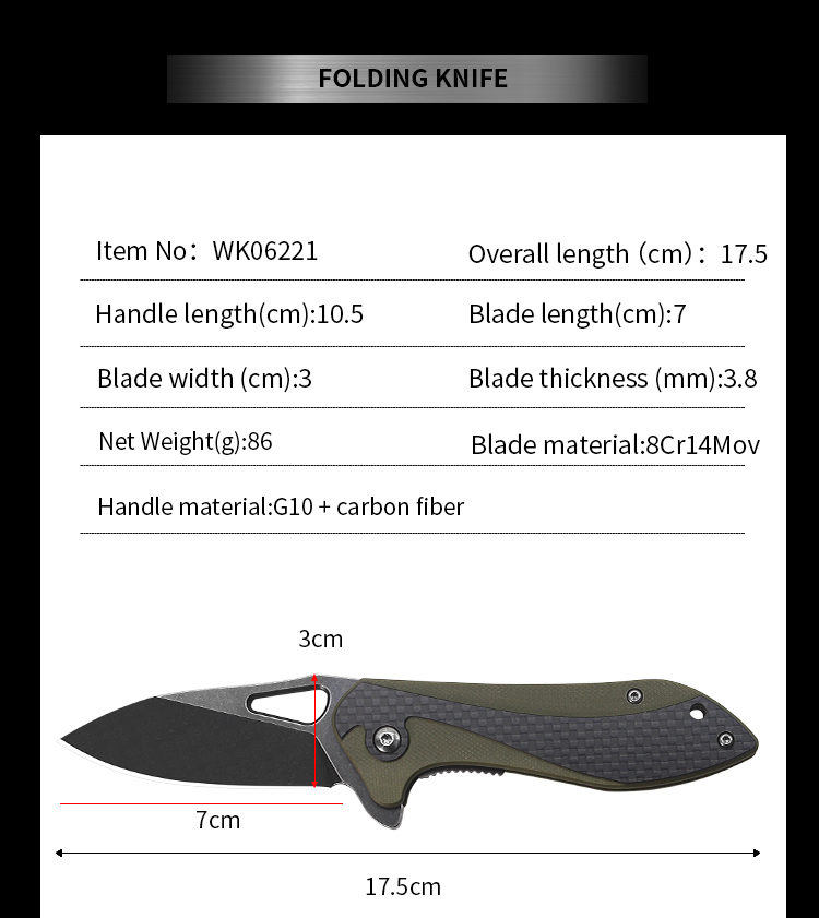 | Item | WK06221 G10 Carbon fiber Survival Folding Pocket Knife |