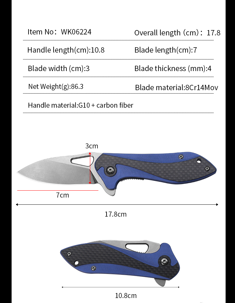 | Item | WK06224 Blue G10 Survival Folding Camping Knife |