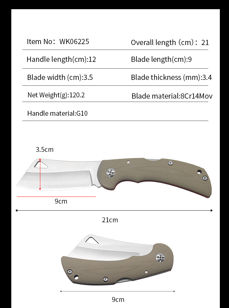 | Item | WK06225 G10 Survival Folding Camping Knife |