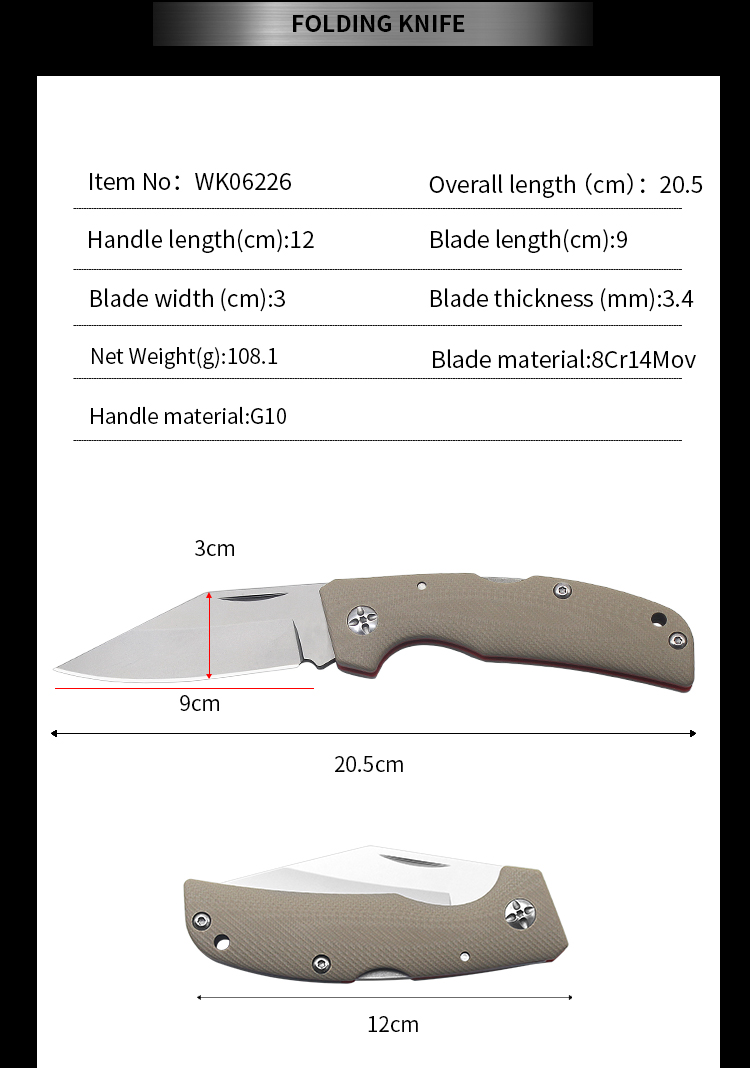 | Item | WK06226 G10 8Cr14mov Survival Folding Camping Knife |