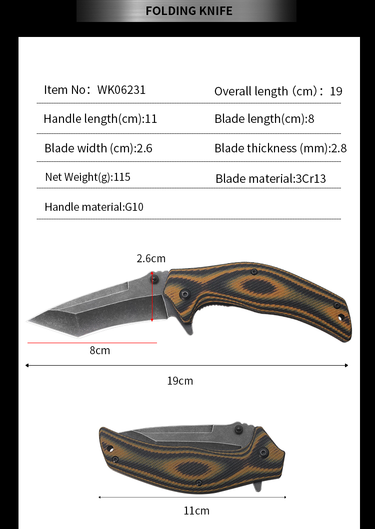 | Item | WK06231 G10 Survival Folding Outdoor Knife |