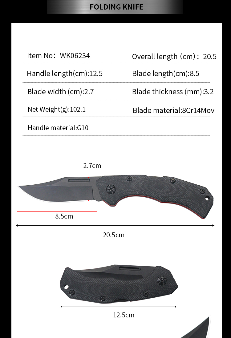 | Item | WK06234 Black Back Lock G10 Survival Folding Outdoor Knife |