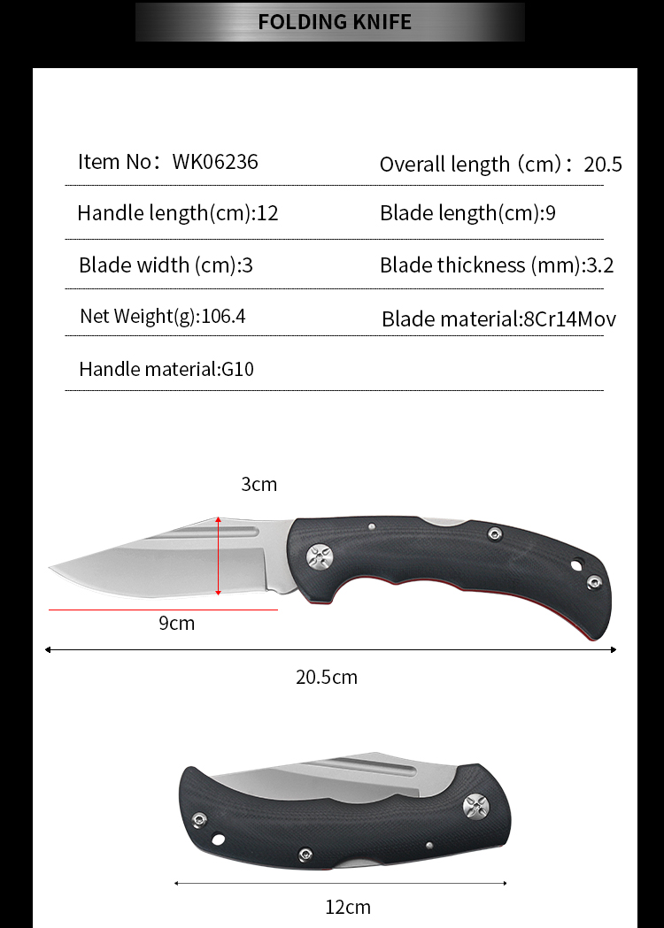 | Item | WK06236 Back Lock G10 Survival Folding Outdoor Knife |