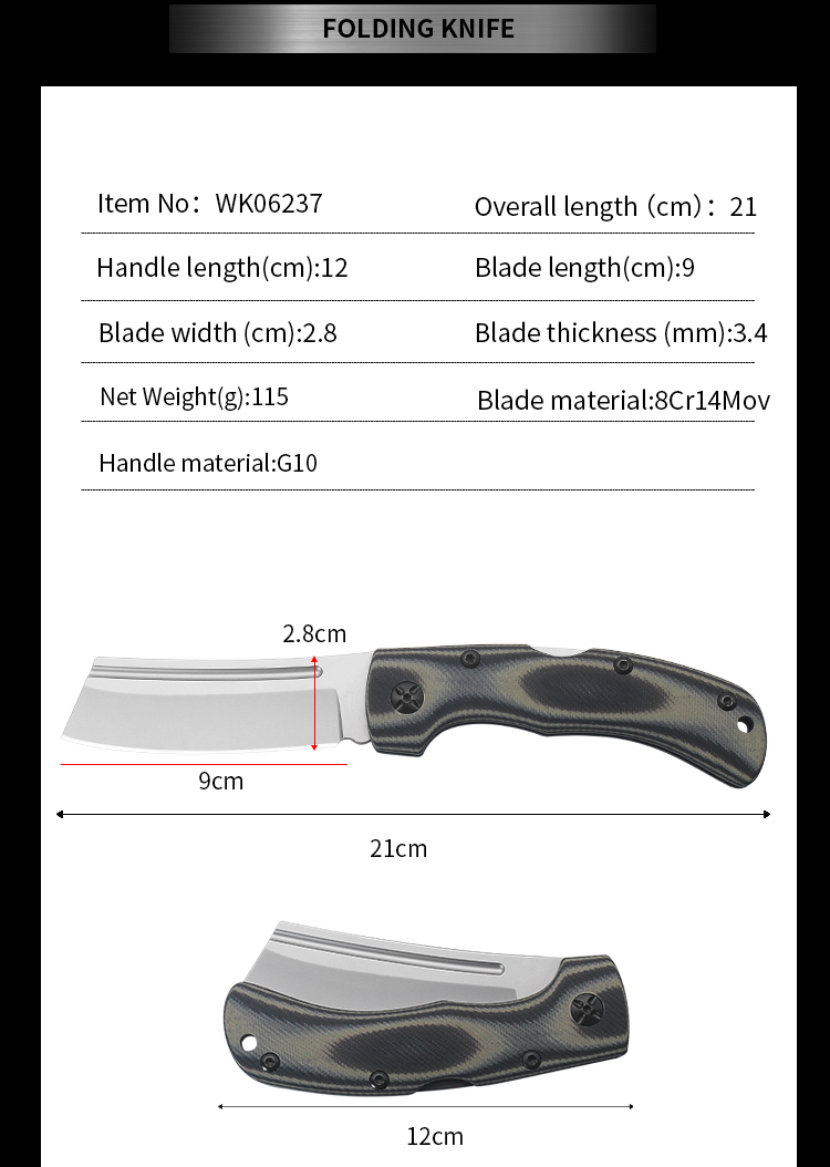 | Item | WK06237 Back Lock G10 Survival Folding Outdoor Knife |