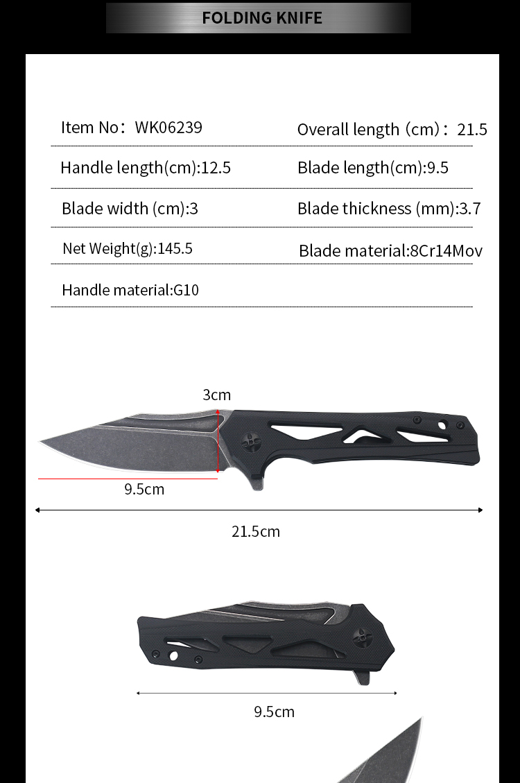 | Item | WK06239 Hollow-carved Design G10 Survival Pocket Camping Knife |