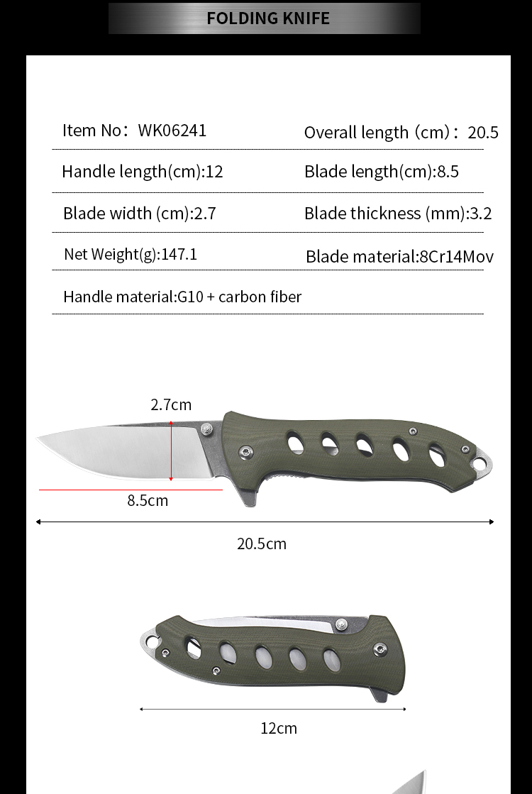 | Item | WK06241 Green G10 Survival Pocket Camping Knife |