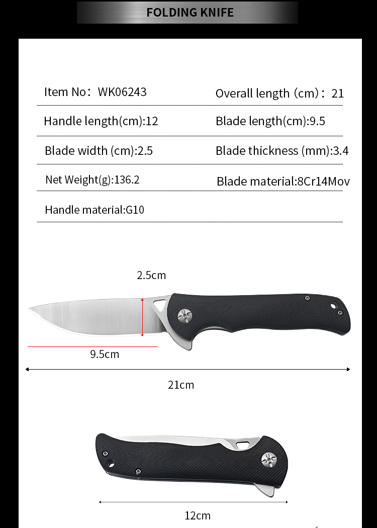 | Item | WK06243 Black G10 Survival Pocket Knife Camping Knife |