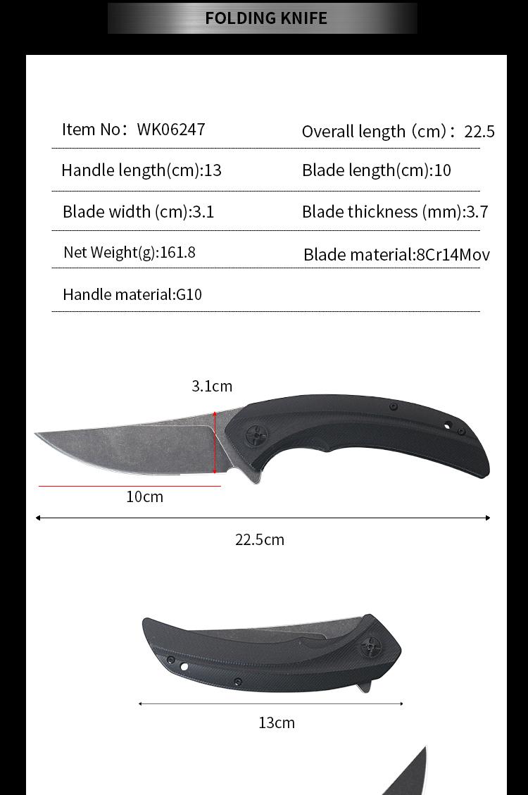 | Item | WK06247 G10 Hunting Folding Camping Knife |