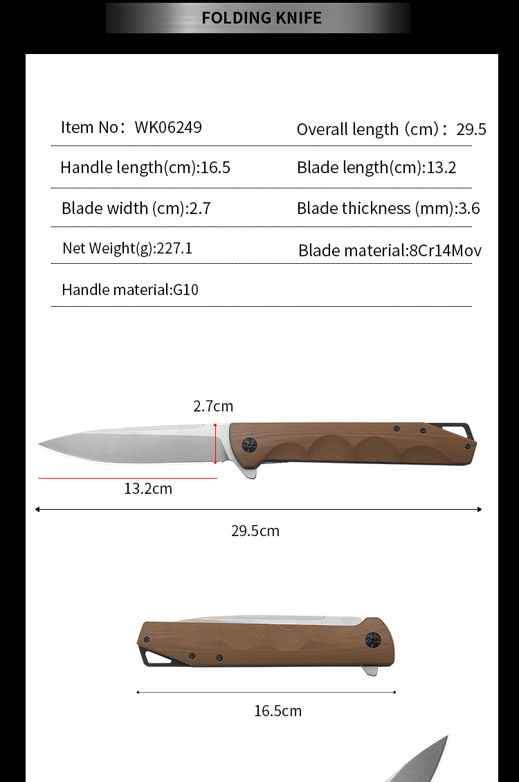 | Item | WK06249 G10 Survival Folding Hunting Knife For Women |
