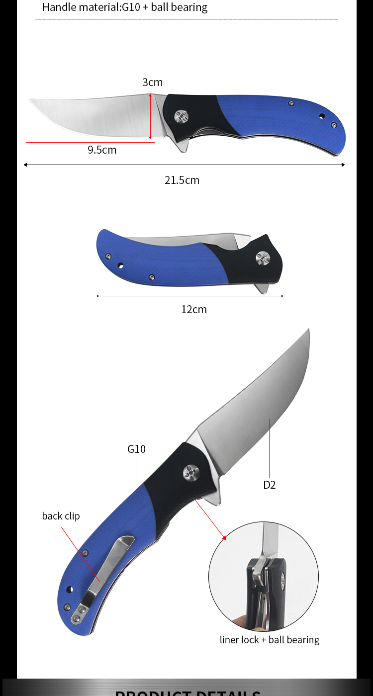 | Item | WK06251 Blue G10 Survival Folding Hunting Knife For camper |
