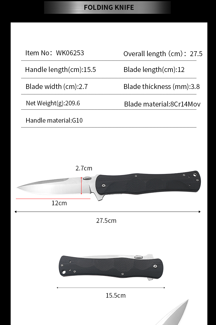| Item | WK06253 Black G10 Survival Folding Hunting Knife For camper |