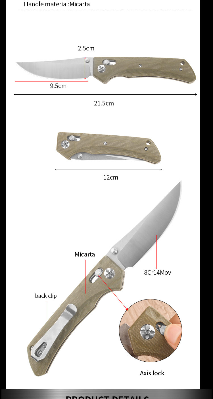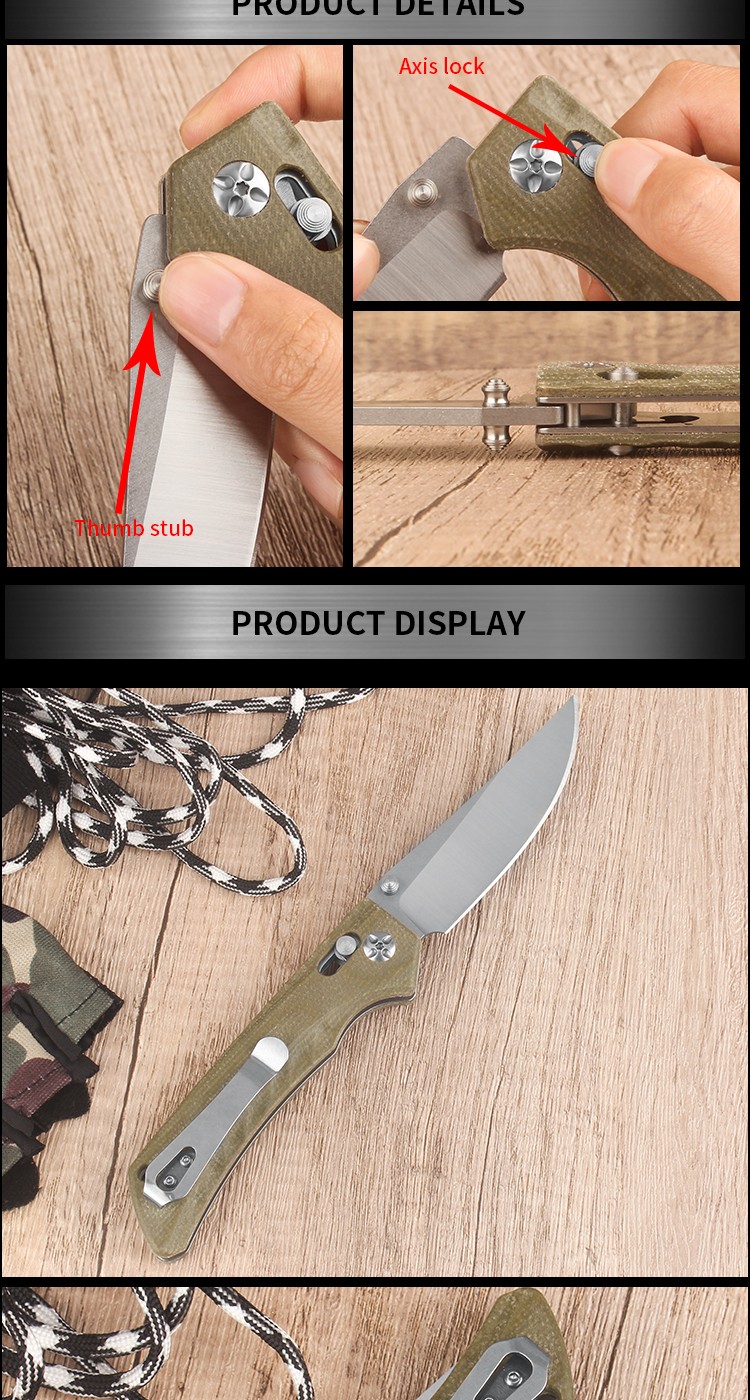| Item | WK06254 Micarta Axis Lock Survival Folding Hunting Knife |
