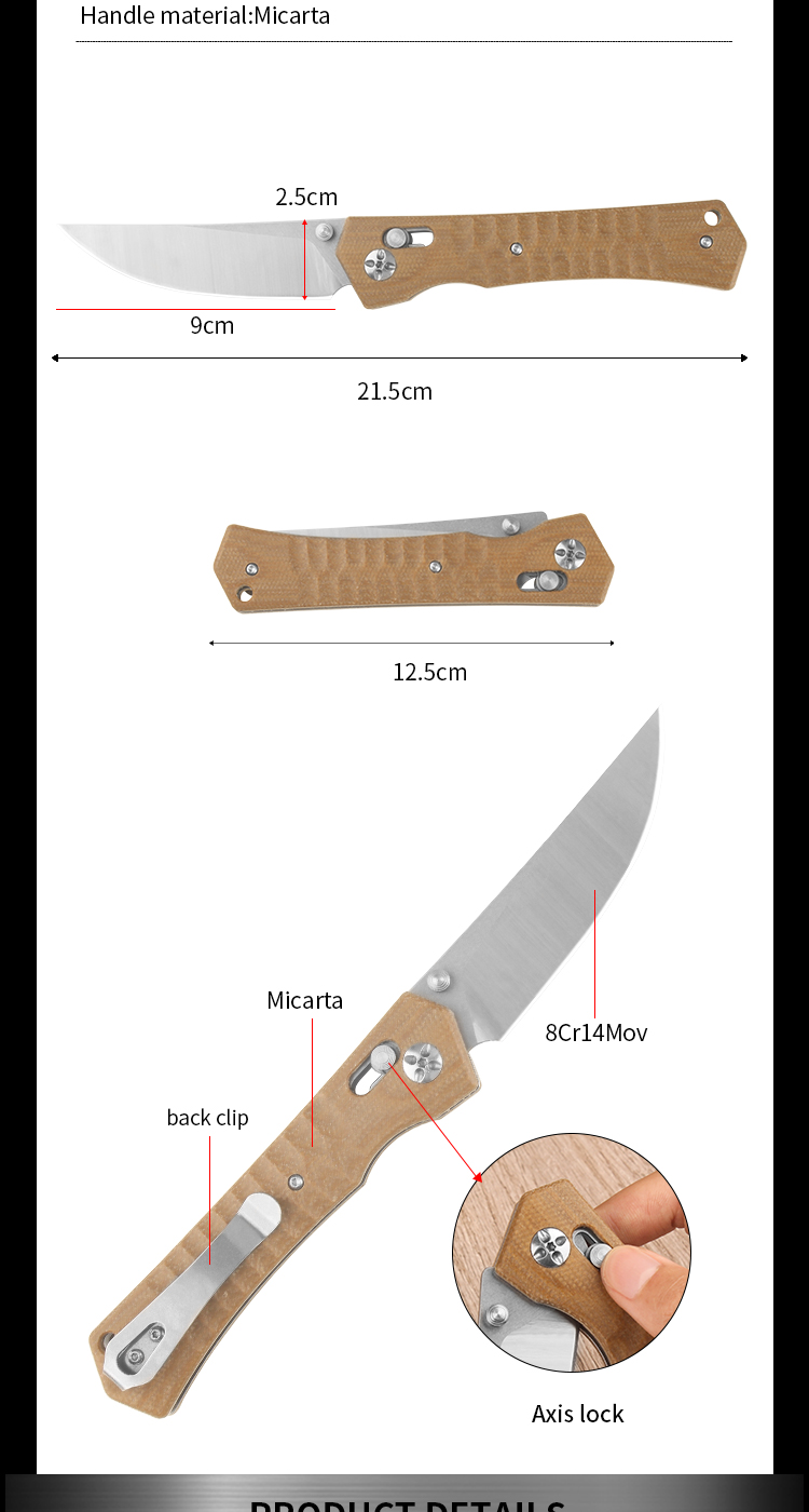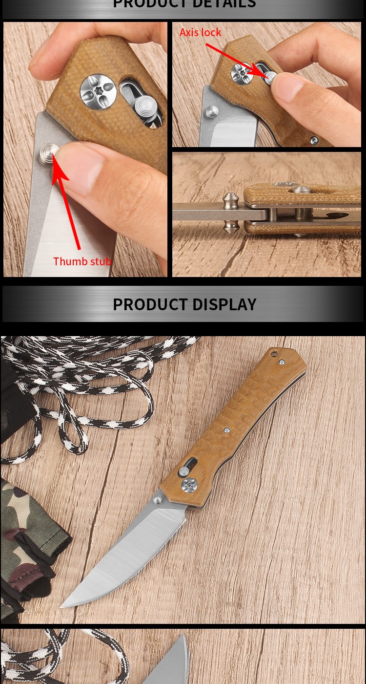 | Item | WK06259 Micarta Axis Lock Survival Pocket Camping Knife |