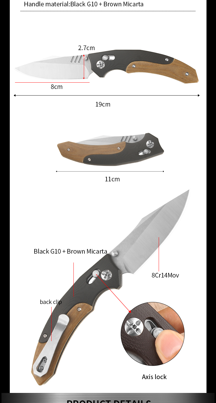 | Item | WK06262 G10 Micarta Axis Lock Survival Pocket Tactical Knife |