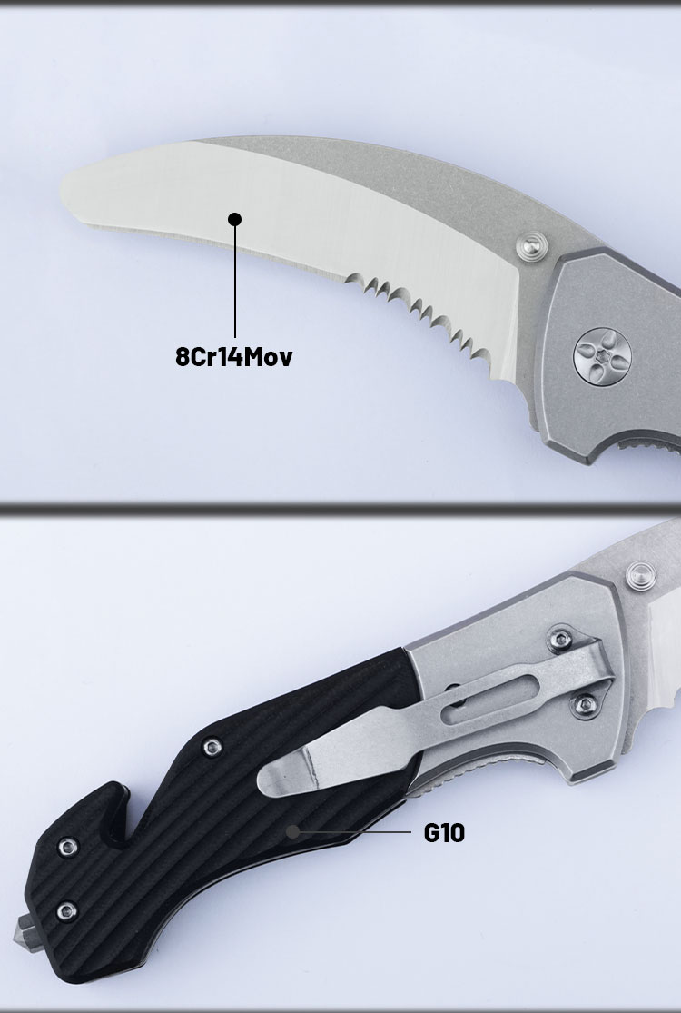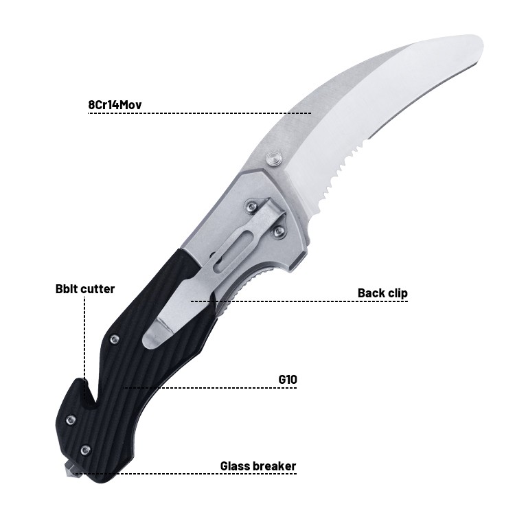 | Item | WK06280 G10 Bent Blade Survival Folding Glass Breaker Knife |