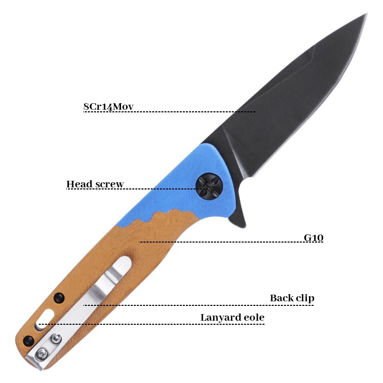 | Item | WK06313 Orange Blue G10 Folding 8cr14 Outdoor Camping Pocket Knife |