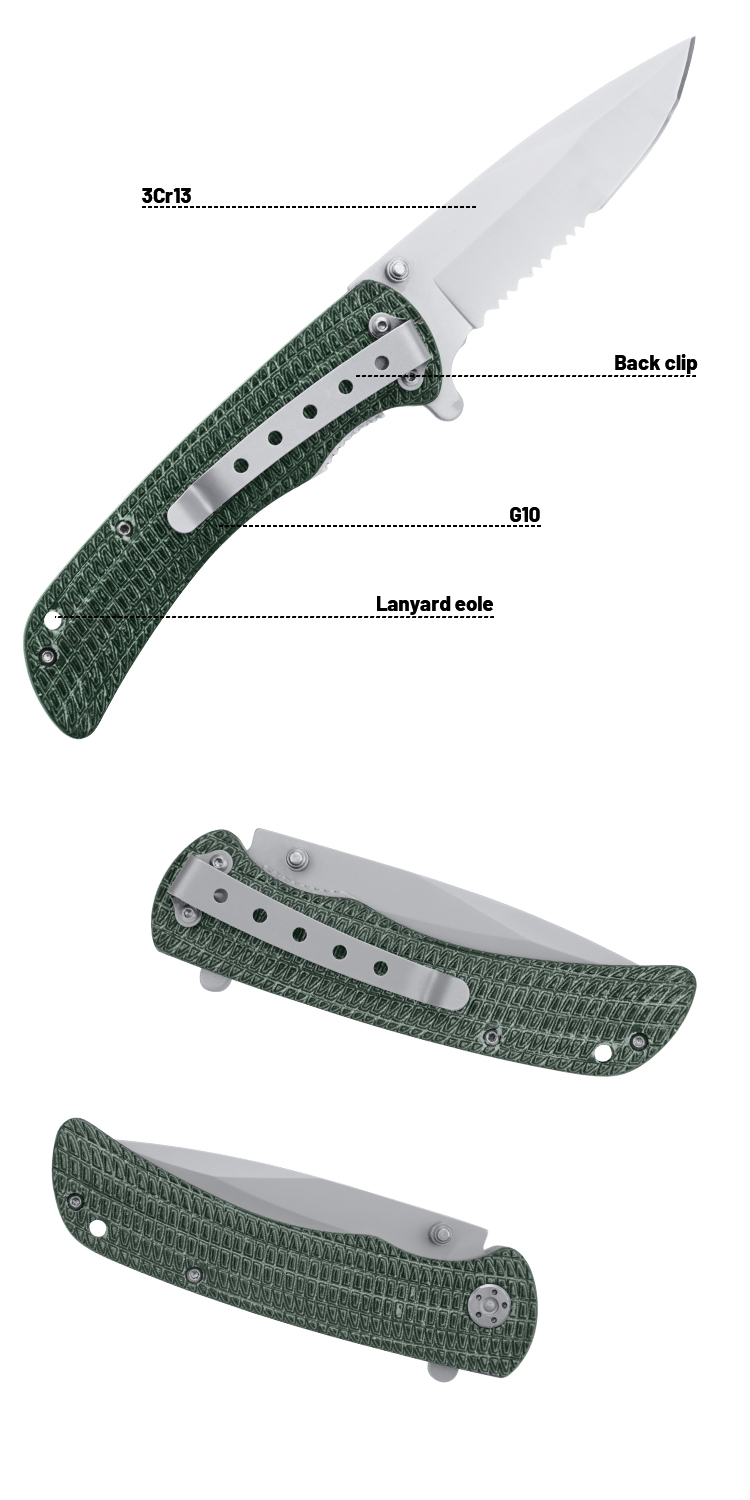 | Item | WK06331 3cr13 Camping Green Folding Outdoor Pocket Knife |
