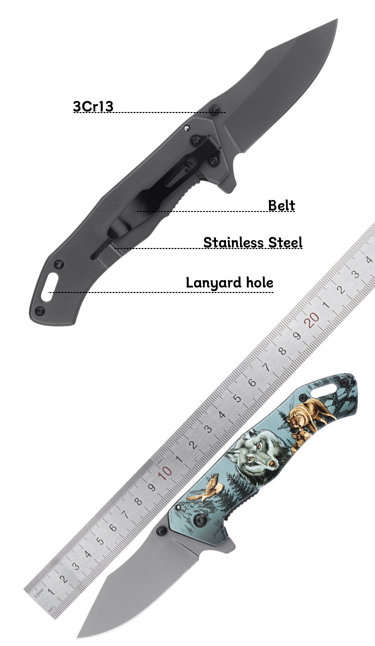| Item | WK06396 Steel Print Handle Folding Outdoor Pocket Hunting Knife |