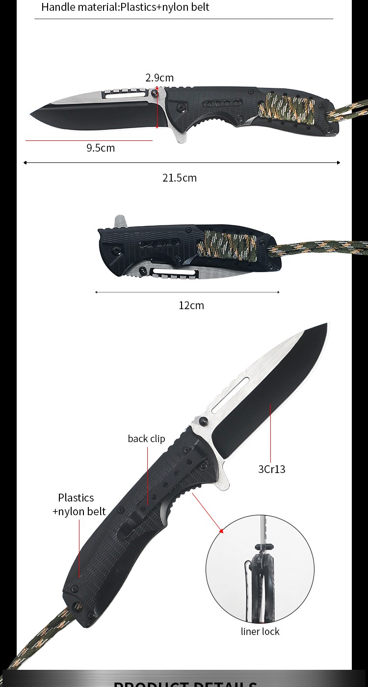 | Item | WK07002 Green Plastic Folding Knife with nylon belt |