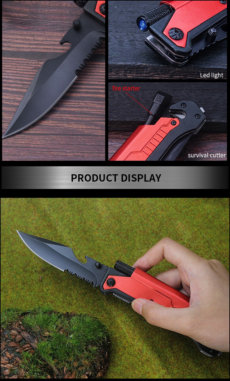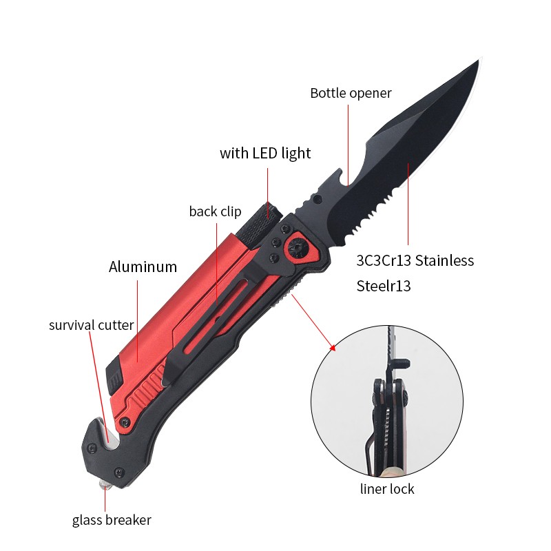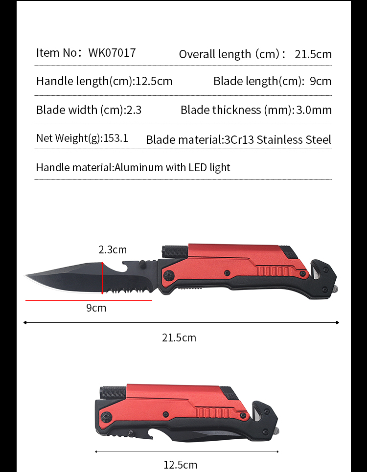 | Item | WK07017 Red Plastic Folding Knife with led light |