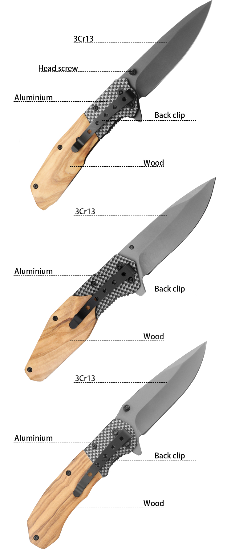 | Item | WK10043 Wooden Handle Folding Pocket Hunting Knife |