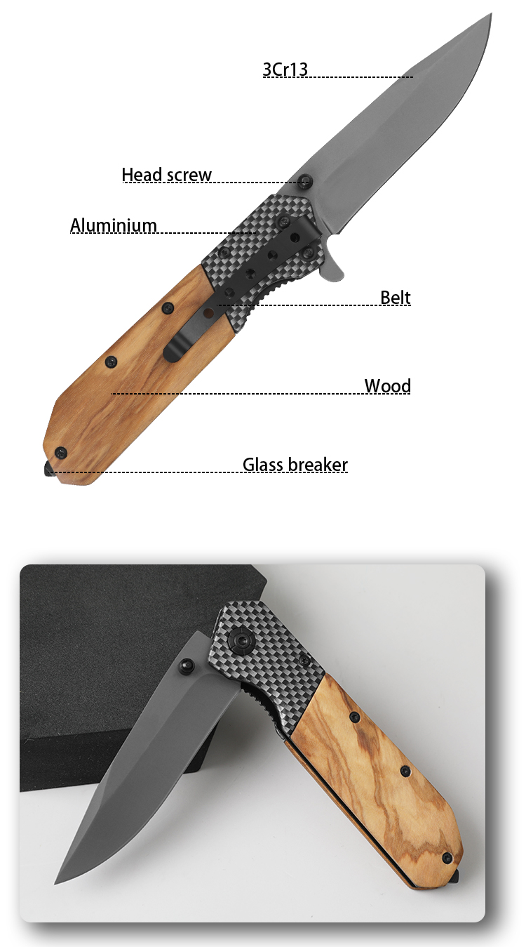 | Item | WK10045 Wooden Handle Folding Pocket Hunting Knife |
