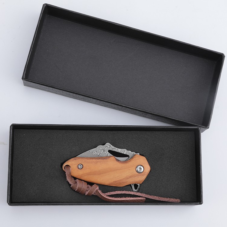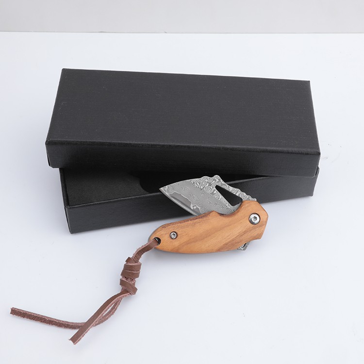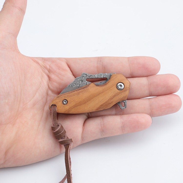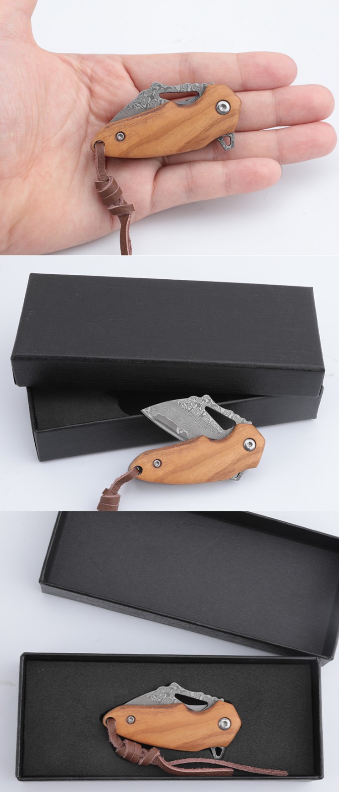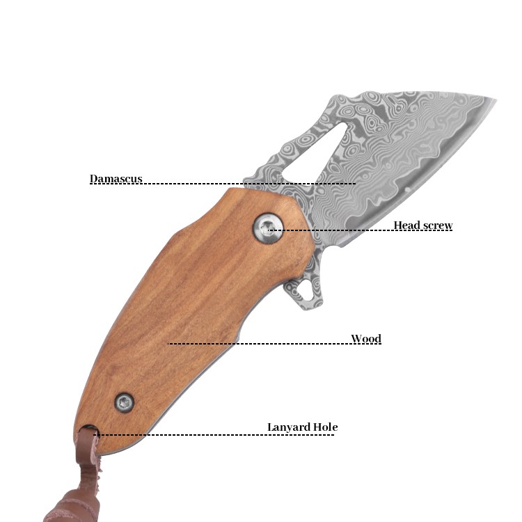 | Item | WK11015 Small Wood Handle Damascus Blade Pocket Folding Knife |