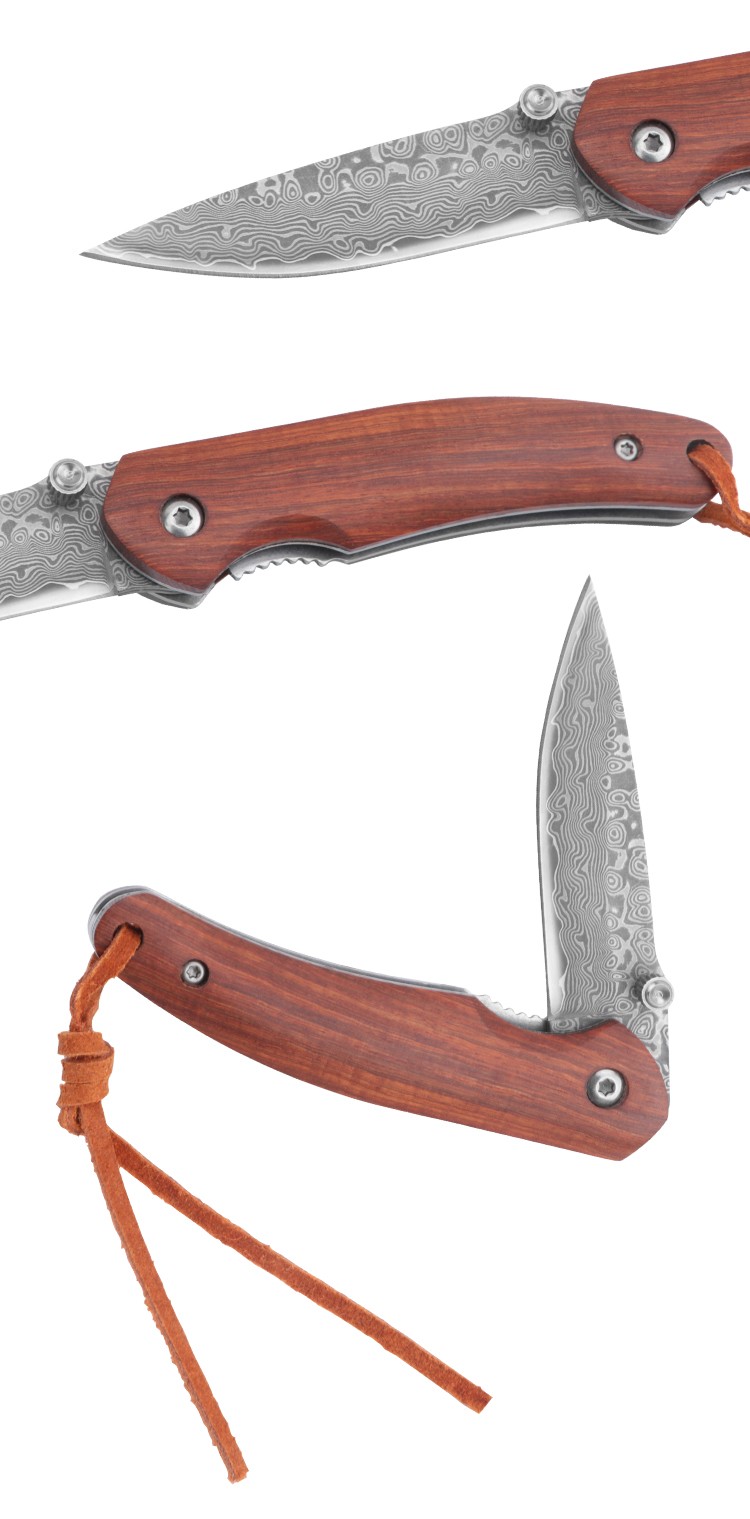 | Item | WK11016 Rose Wood Handle Damascus Blade Pocket Folding Knife |