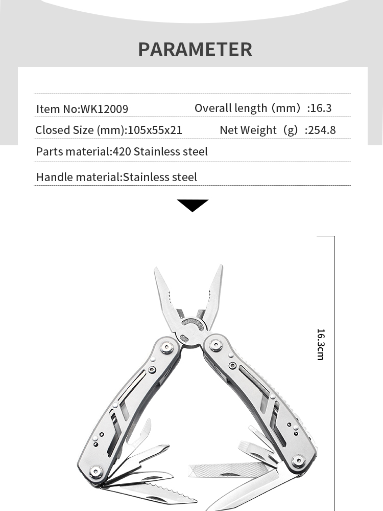 | Item | WK12009 Camping Stainless Steel Fishing Hardware Multi-Tool |