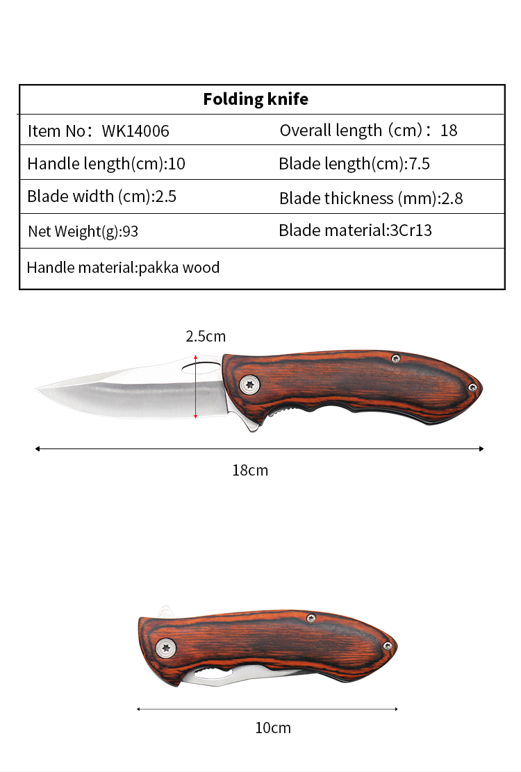 | Item | WK14006 Classical Brown Wood Pocket Folding Knife |